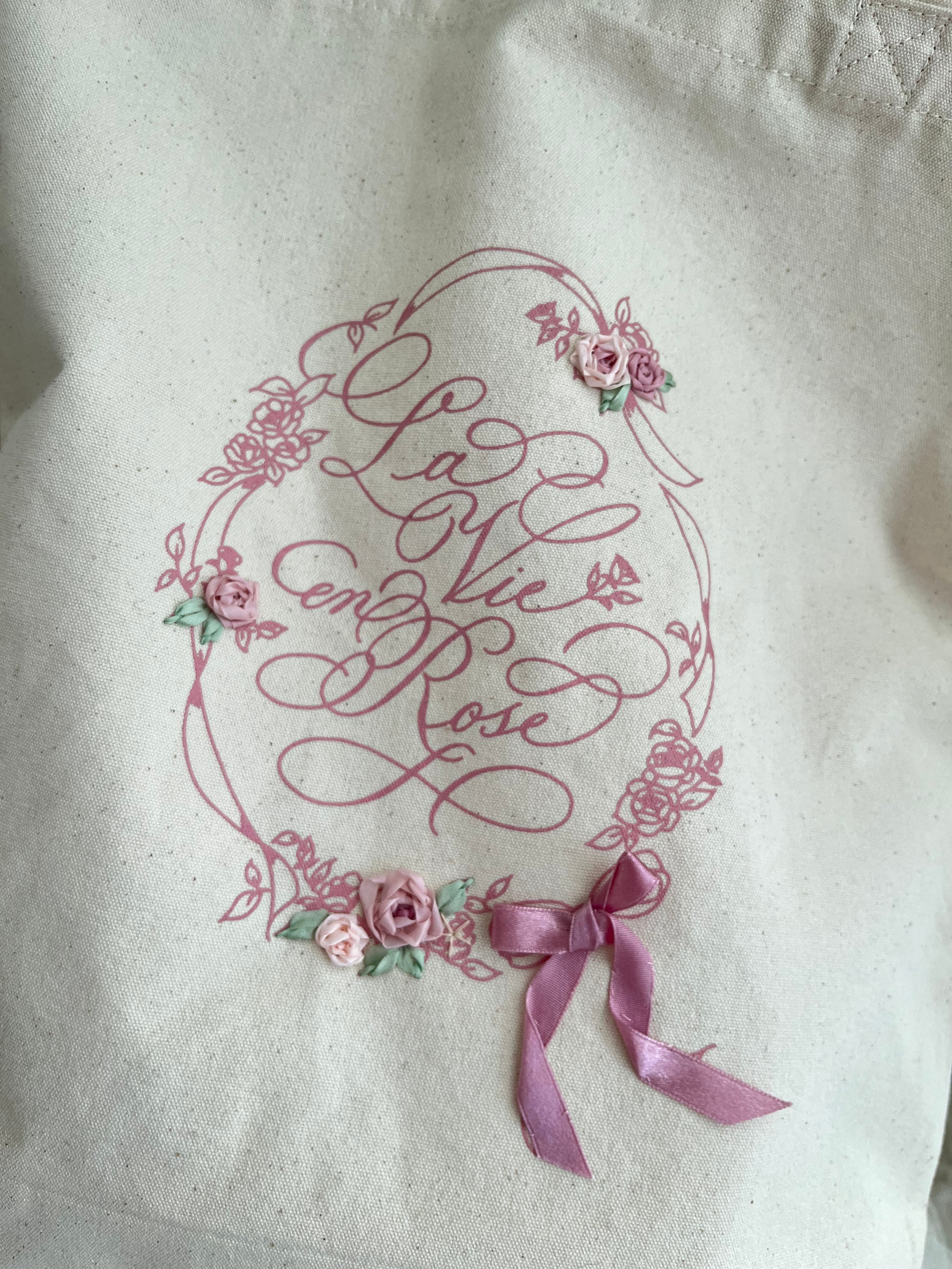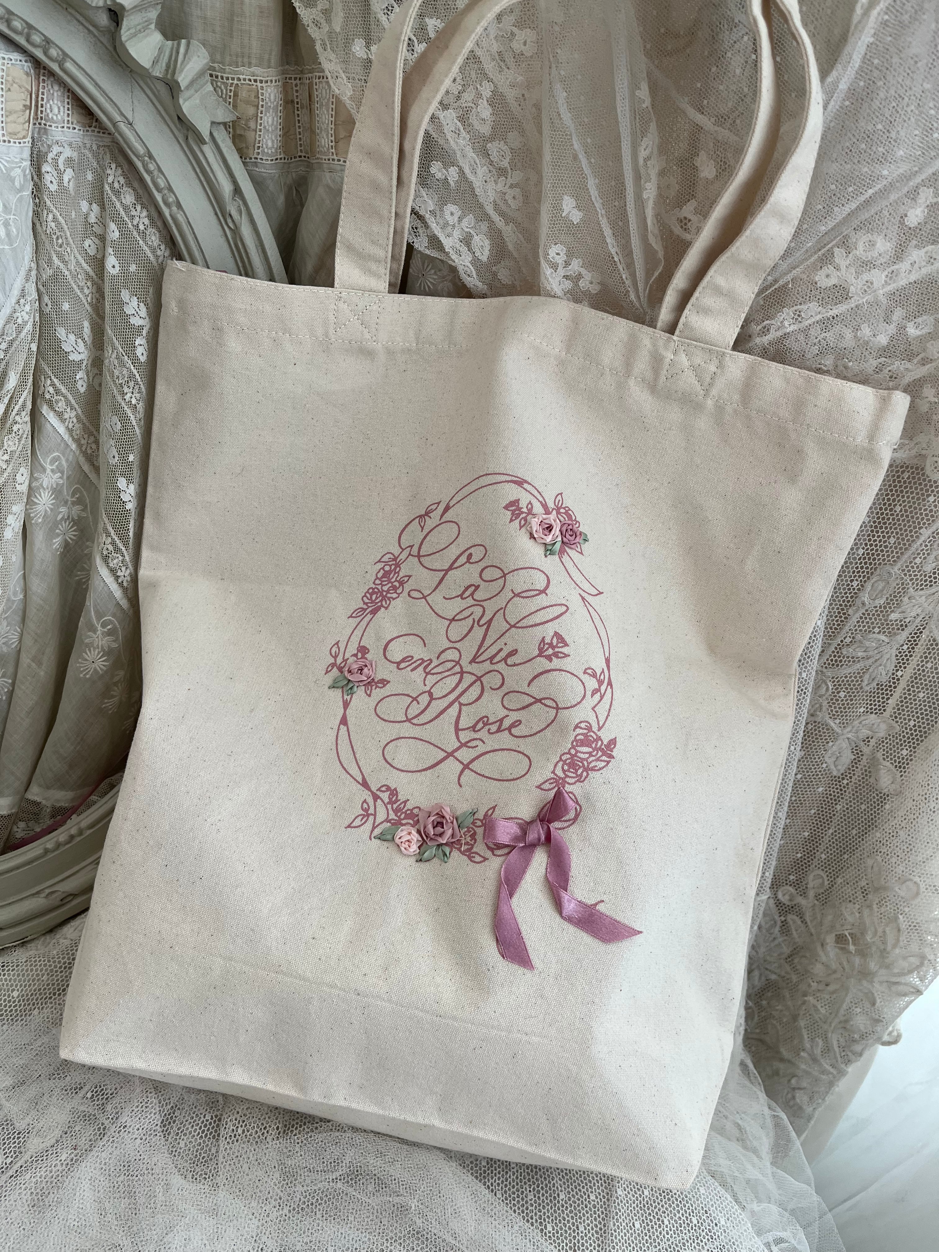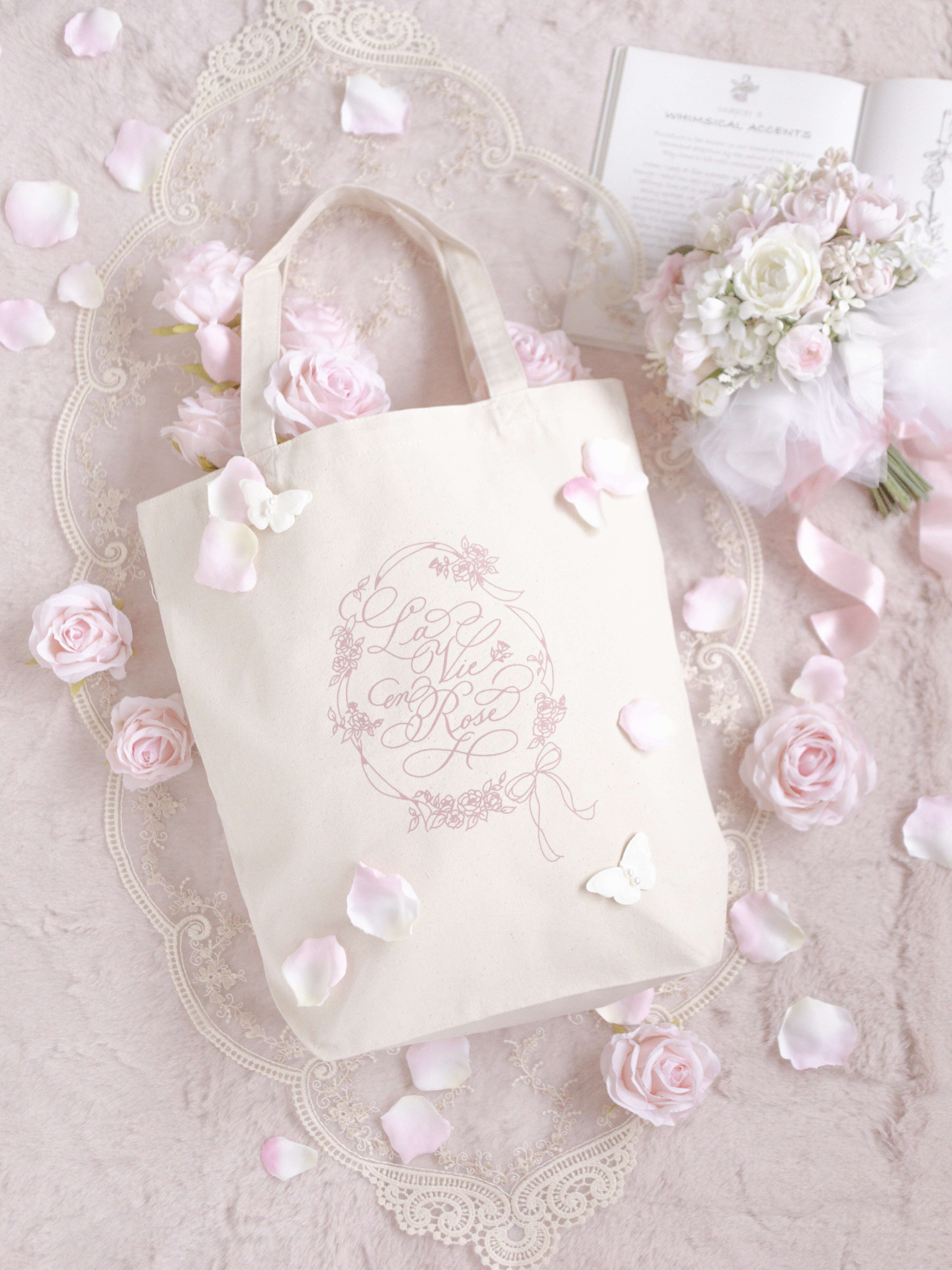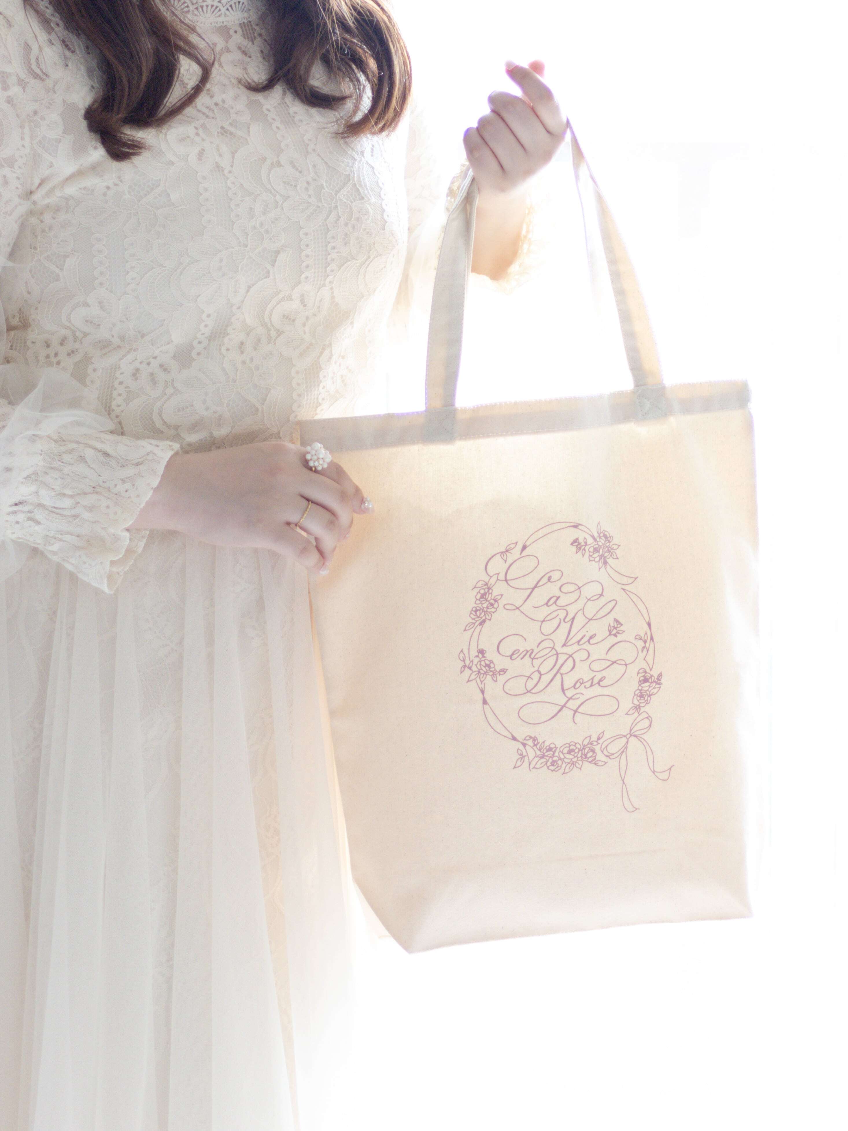 新年キャンペーン【10枚セット】WSに便利!薔薇とリボンのカリグラフィー トートバッグ