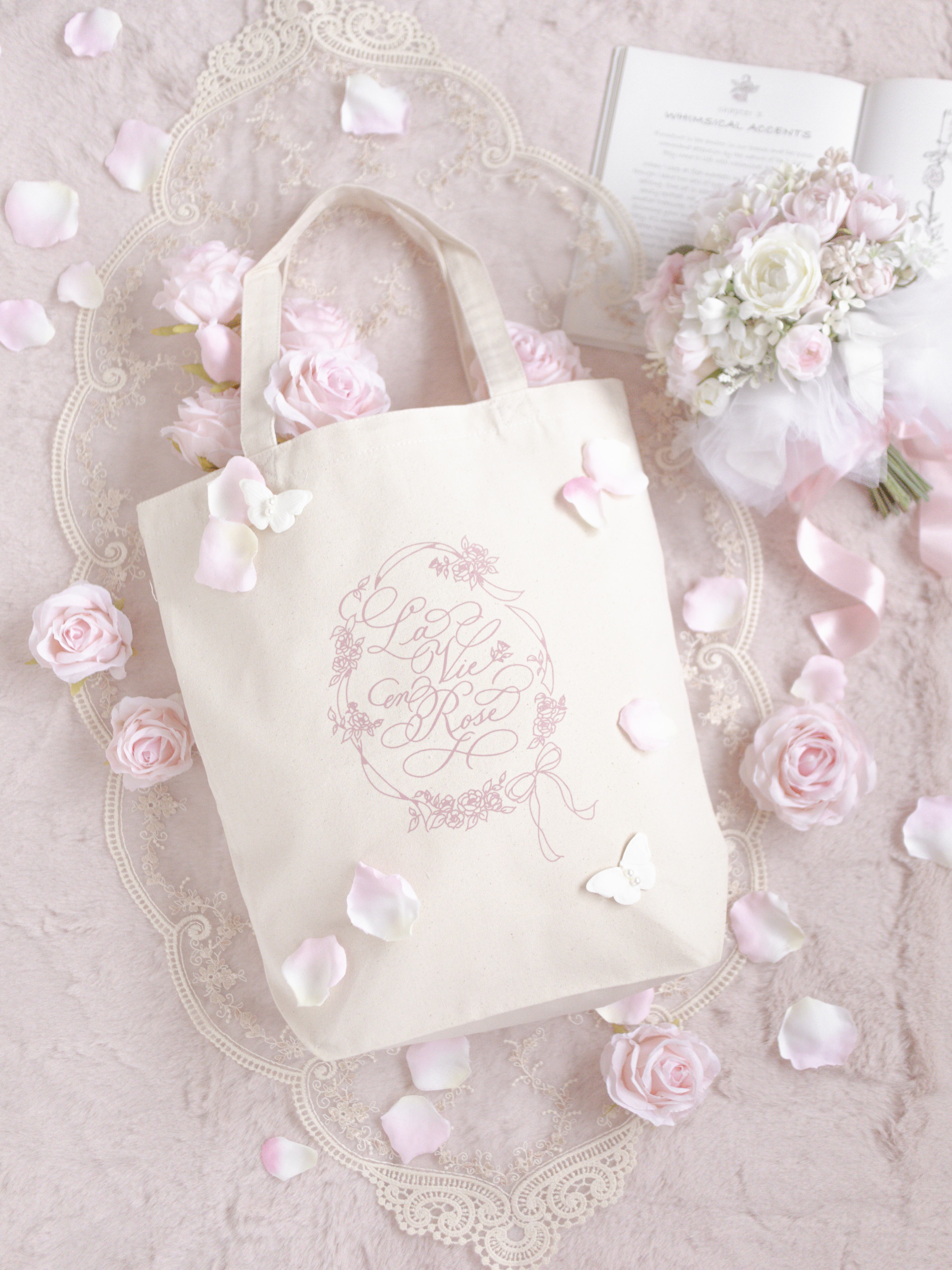 くすみローズピンクの薔薇とリボンのイベントロゴが入り
