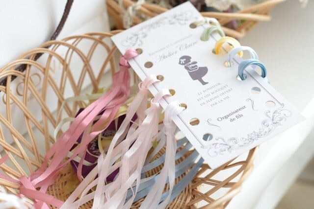 オーガナイザーに刺しゅうリボンや刺しゅう糸をまとめると