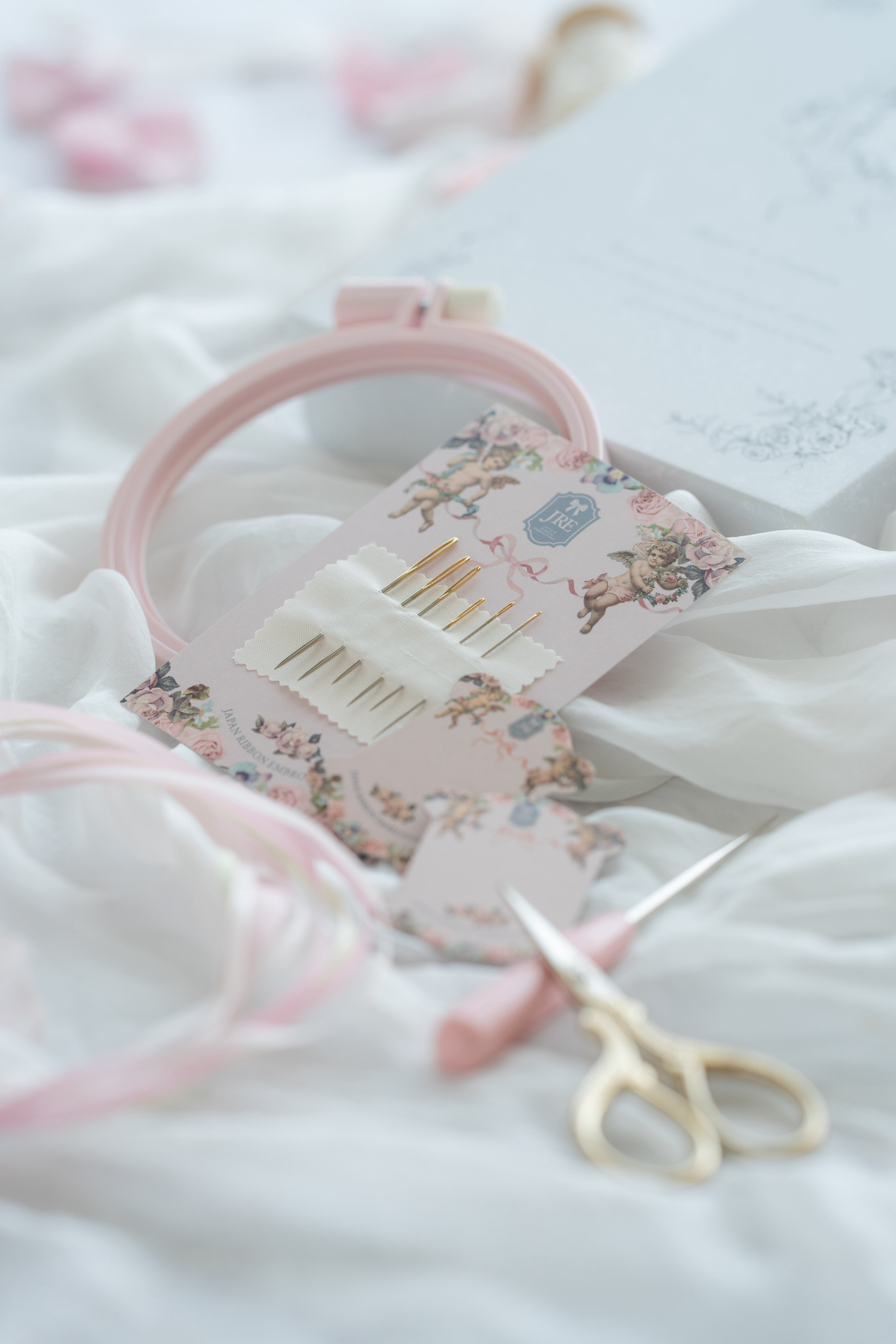 JREオリジナル「エンジェルが微笑むローズ&リボンのBoîte à Couture」 French Rose Pincushonキット付き