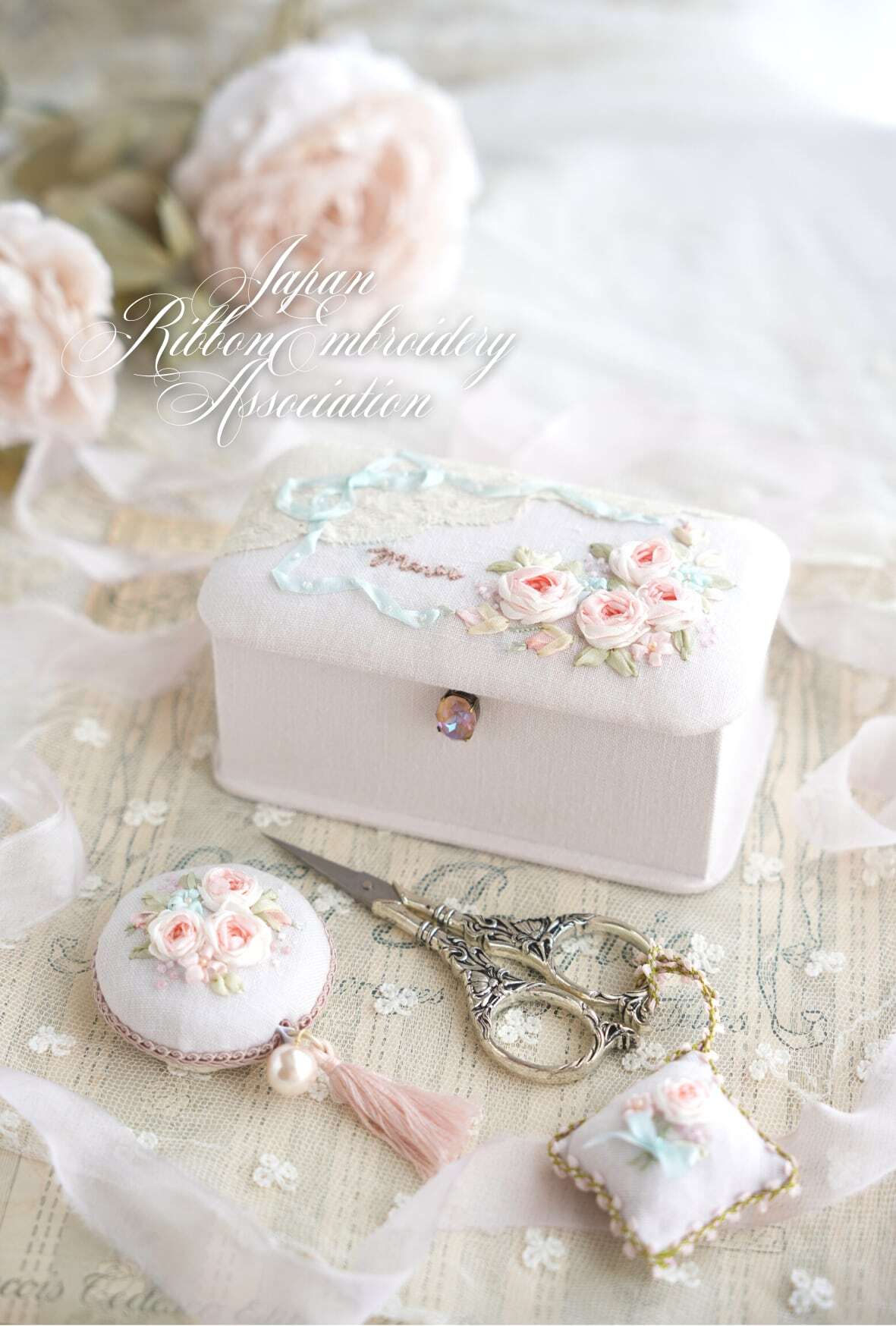 【ライセンスのみ・商品説明をご確認ください】「ローズ&リボンモチーフのクレアの小箱」井上ちぐさのリボン刺しゅう